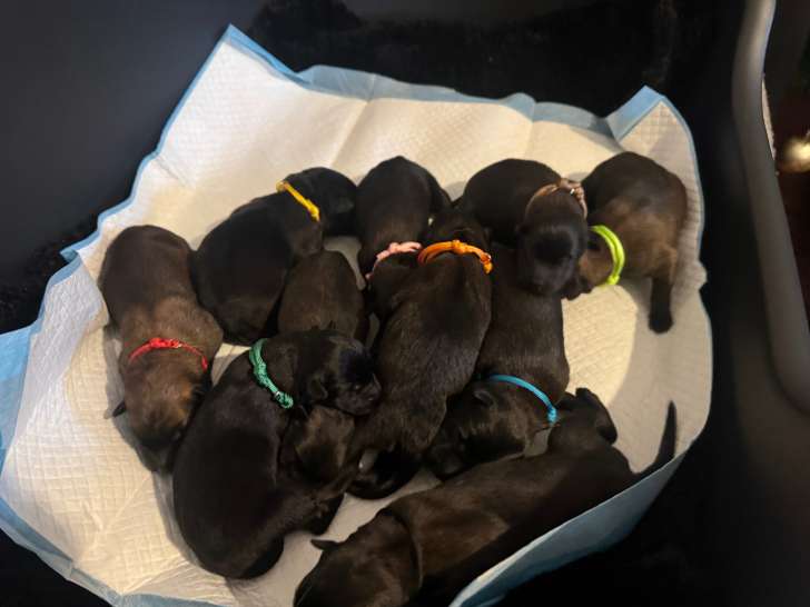 Les chiots sont nés en décembre et seront disponibles à partir de 15 semaines pour le Luxembourg. Pour l'étranger, c'est à voir avec le vétérinaire.