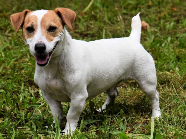 Nous proposons à l'adoption Elton, un mâle Jack Russel Terrier blanc et marron, âgé de huit ans.
