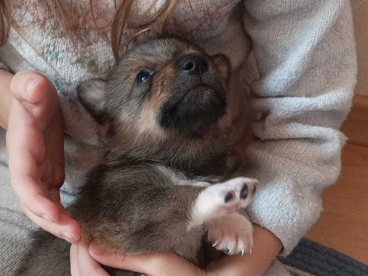 À la réservation, trois chiots Spitz des Visigoths gris à queue longue nés le 28 février 2026 sont disponibles. Une femelle et deux mâles, présentant des marquages distincts et harmonieux (poitrail blanc,...