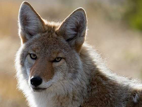 Le coyote se distingue du loup par son museau effilé et ses grandes oreilles taillées en pointe, qui semblent disproportionnées par rapport à sa tête. Quant à ses yeux jaunes en amande, dotés de pupilles rondes et noires, ils lui donnent un air particulièrement rusé. Ses canines impressionnent également, car elle sont très longues comparativement à sa taille relativement menue.