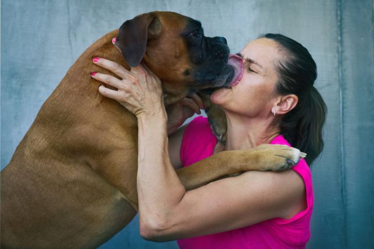 Parmi les divers signes qui montrent qu'un chien aime son maître, figurent le fait de remuer la queue quand il le voit, d'aimer le regarder dans les yeux, de vouloir jouer avec lui... Cela dit, est-ce que le fait de le lécher peut être vu comme un signe d'affection ? Ce comportement a-t-il d'autres significations possibles ? Est-ce problématique voire dangereux de le laisser faire ?