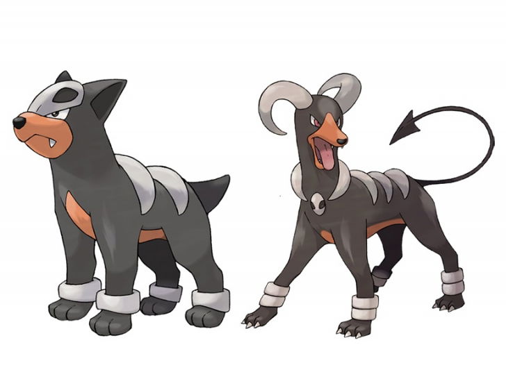 À partir du niveau 24, Malosse peut évoluer en Démolosse (Hellgar en japonais, Houndoom en anglais), une version adulte beaucoup plus intimidante. Il arbore alors une silhouette allongée, une musculature renforcée, et des cornes acérées lui poussent sur sa tête. Le collier osseux qu’il porte ainsi que les motifs sur son dos rappellent à nouveau les représentations classiques de chiens de l’Enfer.