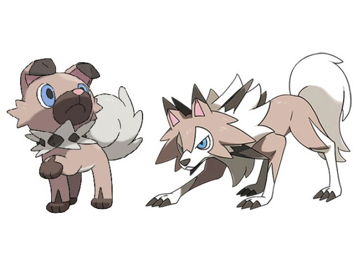 Entre le chien et le loup, il n’y a qu’un pas que Pokémon franchit allègrement avec les évolutions de Rocabot. À partir du niveau 25, celui-ci se transforme ainsi en Lougaroc (Lugarugan en japonais, Lycanroc en anglais), un Pokémon à l’apparence de loup dont l’aspect et les statistiques dépendent du moment de la journée où a lieu l’évolution.