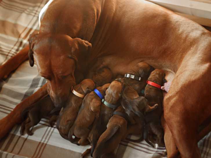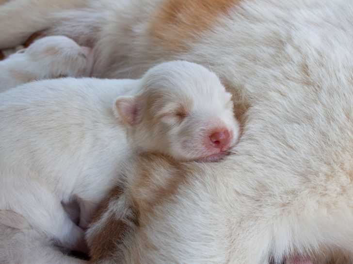 Après leur naissance, il faut éviter autant que possible de tripoter les chiots, et veiller à ce que chaque petit trouve les tétines de la mère. La première semaine, ils doivent se nourrir environ toutes les deux heures. L'allaitement durera environ 7 semaines.
