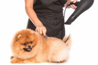 Pour bien sécher votre chien et obtenir un résultat optimal, commencez par le ventre et les pattes, en gonflant le poil. Passez ensuite à la queue et à la tête, pour finir par le corps. Il est important de bien sécher le corps en soufflant par-dessus, de façon à ce que le poil plombe bien et ne prenne pas trop de volume. Au moment de sécher le pelage du chien, il est possible de mettre un peu de talc sur les poils bouclés à l'arrière des oreilles : cela leur donne un effet bouffant esthétique.