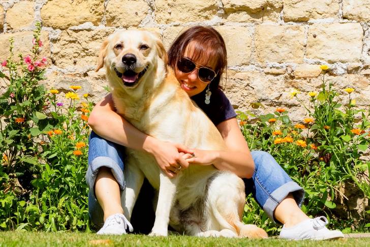 Enfin, dans mon cas, j’ai l’avantage d’être également comportementaliste canine, c’est-à-dire que je possède une expertise sur le comportement des chiens. Cela me permet d’éviter de mettre un animal mal à l’aise au cours d’une séance. J’avoue d’ailleurs être toujours vraiment très triste quand je vois des homologues qui pensent avoir fait de belles photos de personnes avec leur animal, alors qu’en réalité ce dernier montre beaucoup de signes d’anxiété, ne passe manifestement pas un bon moment, voire pose sous la contrainte.