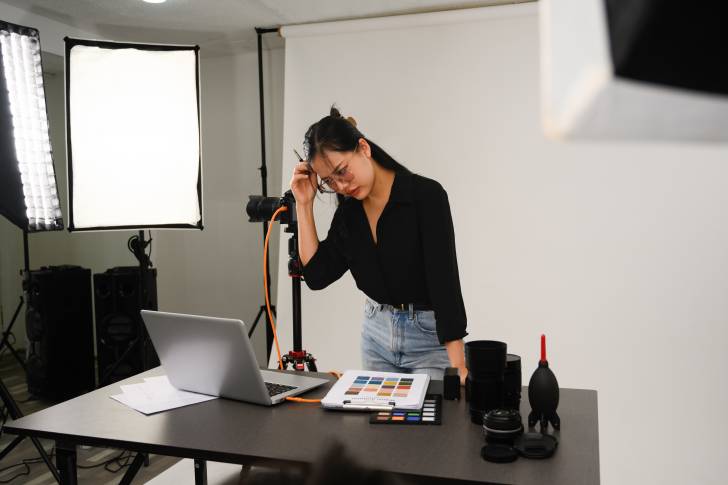 Ensuite, tout dépend si vous voulez ou non faire de la photo en studio. Le cas échéant, il faut louer un local approprié ou être en mesure d’en installer un chez soi, puis acheter toutes les lumières, les fonds, etc. Certes, cela permet d’enchaîner les shootings sans avoir à se déplacer, se soucier de la météo, attendre la fameuse golden hour... Mais tout cela a un coût : même si on a la possibilité de le faire à son domicile, il faut alors investir plusieurs centaines d’euros supplémentaires. Dans le cas où on loue un local, le coût initial pour l’aménager peut même atteindre plusieurs milliers d’euros – sans même parler du loyer qu’il faut ensuite verser chaque mois.