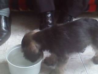 Un American Hairless Terrier équipé d'un collier et d'une médaille dans un parc