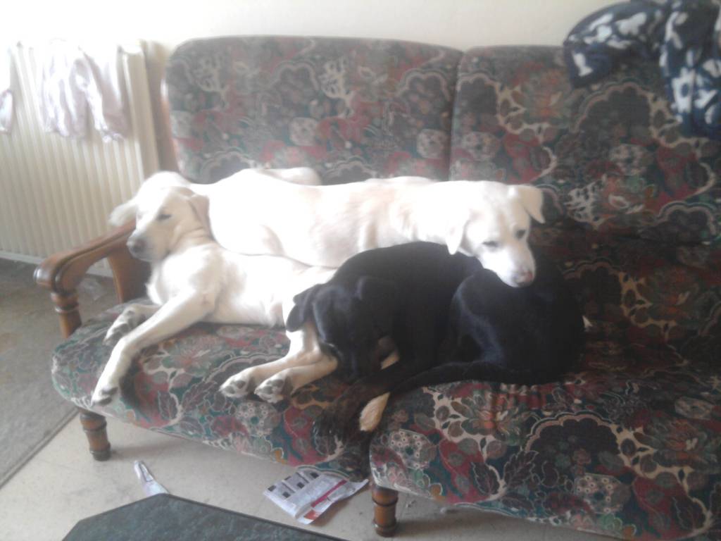 Bouba à 4 ans labardor croisé husky, Théo à 2 ans labrador et Shanga avait 1 an labrador croisé cocker
