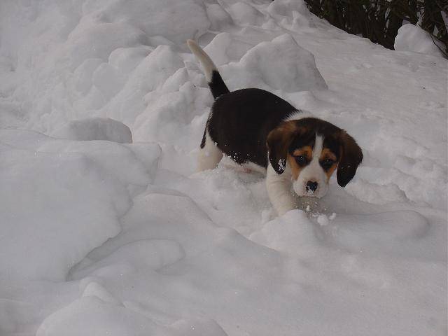 si petit et il aime deja la neige... 8 semaines