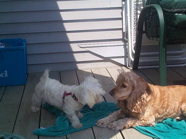 Coquille et Cookie après la baignade
