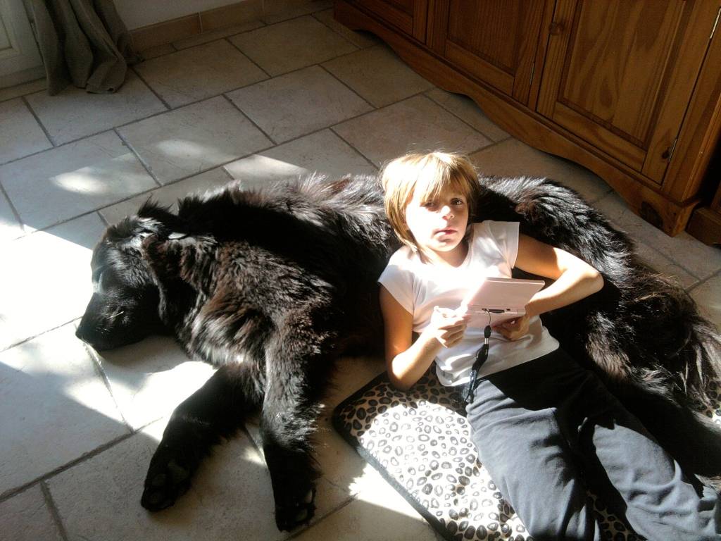 mon toutou adoree espece terre neuve elle a 2 ans et elle s'appele danka et a cote ces ma ptite seur qui a 8 ans et moi j'ai 12 ans