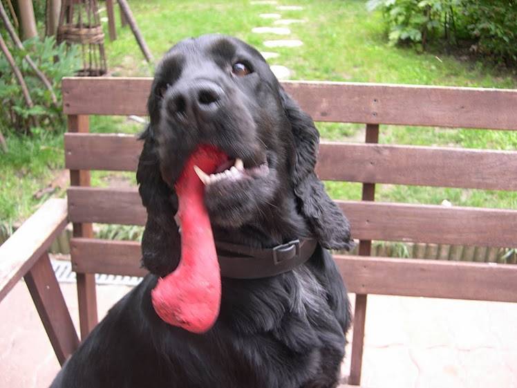 Voici mon chien , Diabolo! on dirais que c'est sa langue mais en faites, c'est son jouet favoris!
