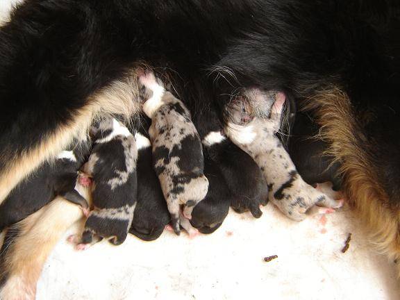 DIckxy est le petit noir tricolor avec la plus longue queue c le seul d'ailleur a en avoir une longue!!! C'est un Berger Australien