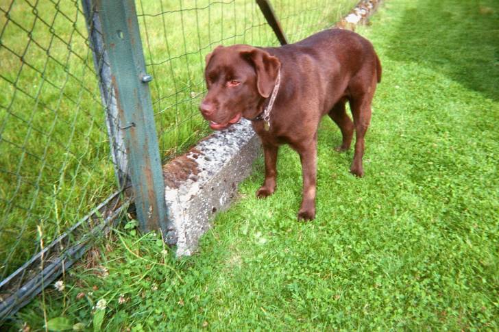 voici ma chienne dolmène,c'est une femelle labrador,elle est de couleur chocolat comme vous pouvez le voir.