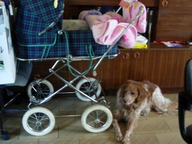 nouvelle arrivée a la maison,jolie bébé!voyez comme elle est bien entourée! tous les jour nos toutous nous surprènent!
