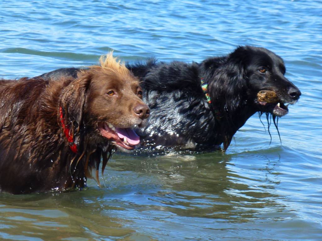 Sally, ma chienne et Fidèl le chien de ma soeur, qui sont bien contents de se retrouver à la plage !