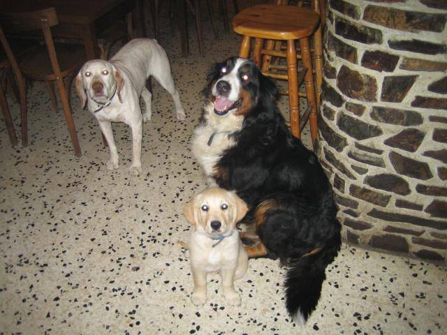 voici mes deux copain avec qui je joue tous les jours, mon maitre tiens un restaurant et je monte la garde.J'étais petite la, je venait juste d'arriver