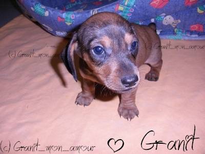 Voici mon chien Granit, c'est un teckel nain a poil ras, il est encore très jeune ! 2 mois !