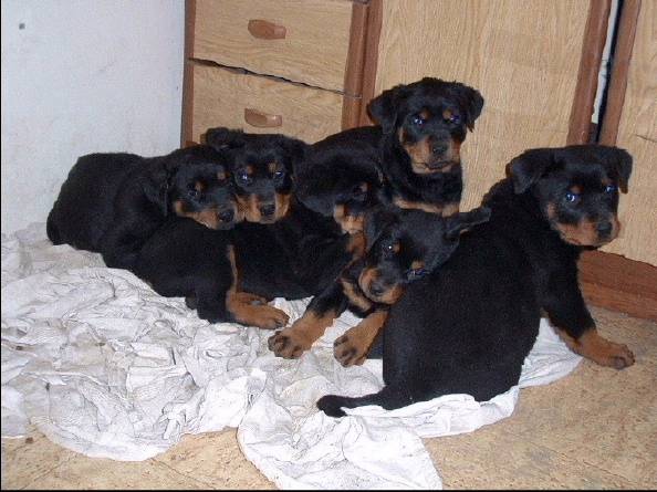 7 chiots pendant 2 mois (800 grammes puis 8 kg)