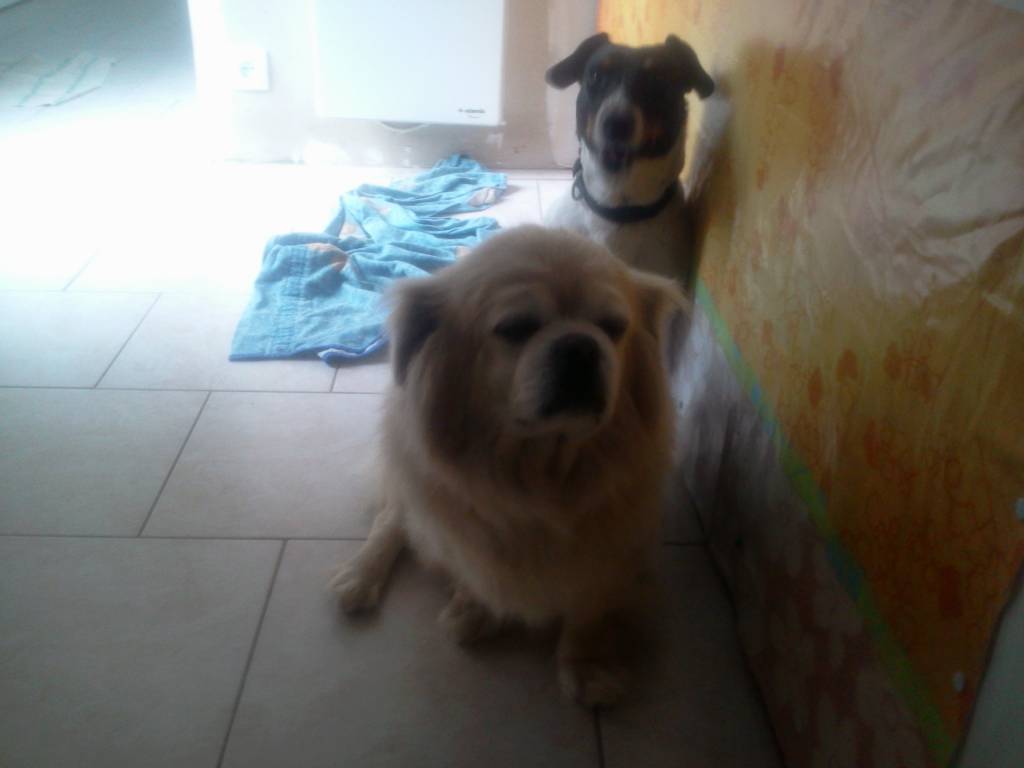 mon petit jack rusel de 4 ans et mon espagnol du Tibet de13 ans