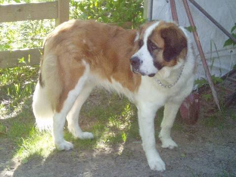 Charlotte est un Saint-Bernard qui a 2 ans aux poils longs et pése 115 livres.