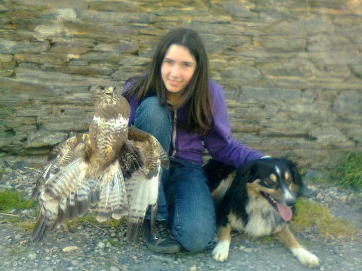 Moi tenant l'aigle que mon chien Enko a attrapé.
