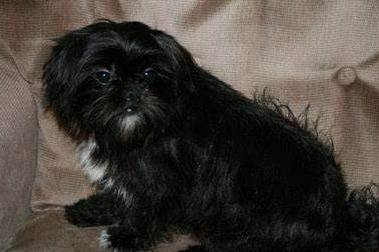 Un Affen Tzu noir assis sur un canapé beige