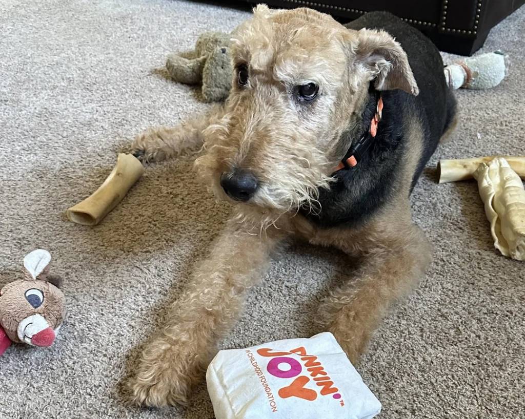 Deux Airedale Terriers qui obéissent au doigt et à l'œil