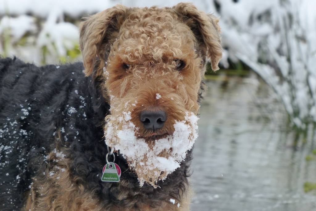Deux Airedale Terriers qui obéissent au doigt et à l'œil