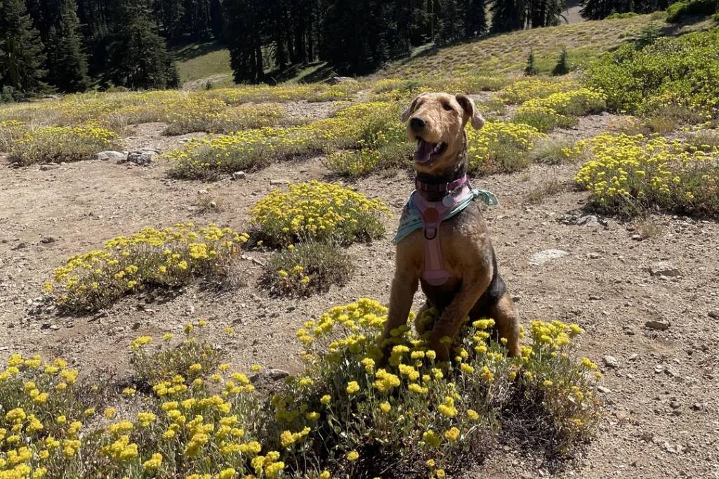 La vie paisible d'un Airedale Terrier dans un parc