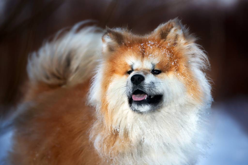 Vue proche d'un Akita Inu sous la neige