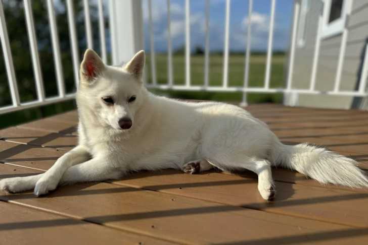 Un Alaskan Klee Kai allongé sur un plancher