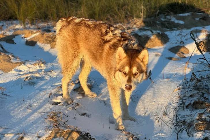 Un Alusky sur une surface enneigée