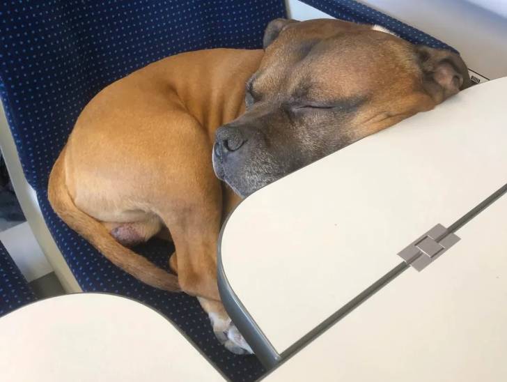 Un American Bully Staffy Bull Terrier allongé dans un fauteuil et semblant dormir