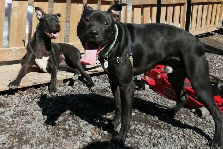 Deux American Bully Staffy Bull Terrier ayant la gueule ouverte
