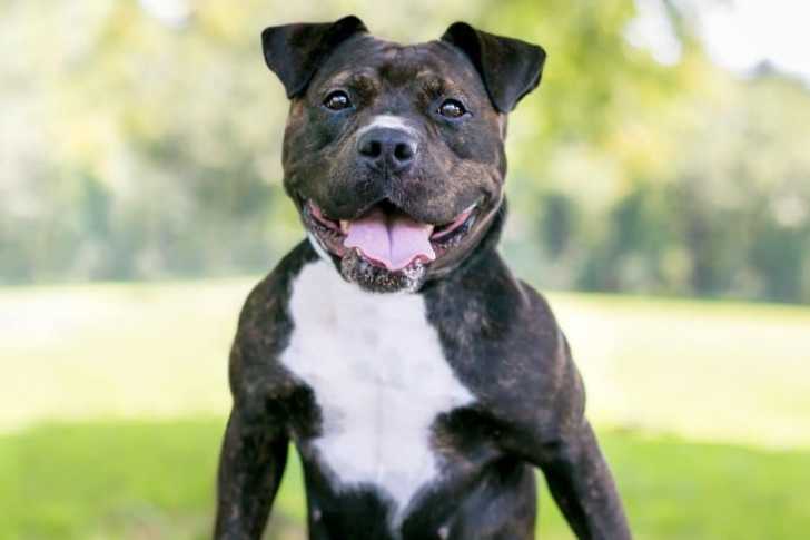 Photo en gros plan d'un American Pit Corso faisant face à la caméra
