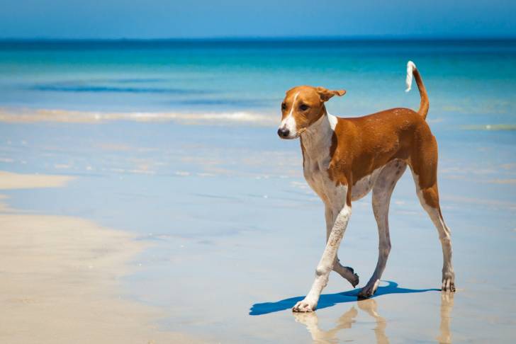 Un Azawakh en train de marcher au bord de la mer