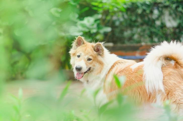 Un Bangkaew de Thaïlande fauve pan blanc dans un jardin