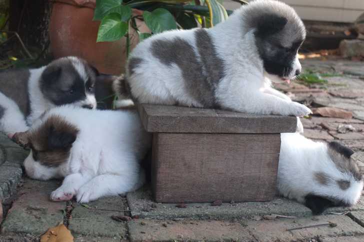 Des chiots Bangkaew de Thaïlande s'amusent ensemble