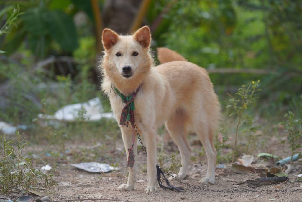 Un Bangkaew de Thaïlande attaché sur un terrain