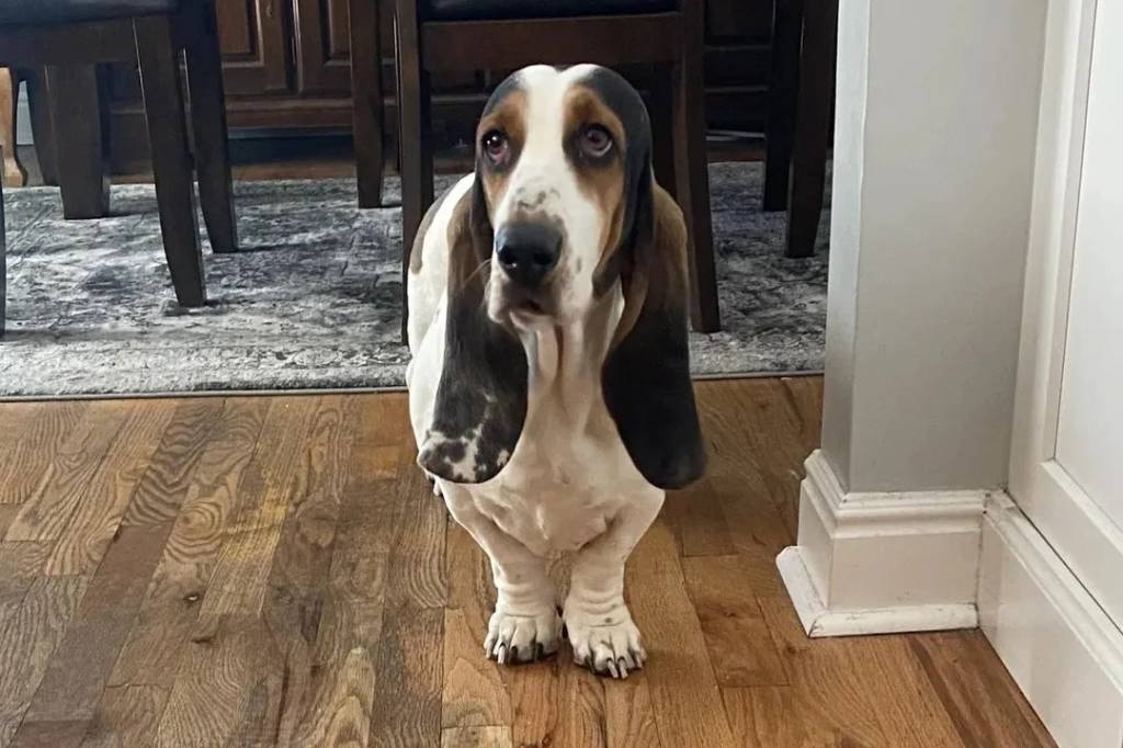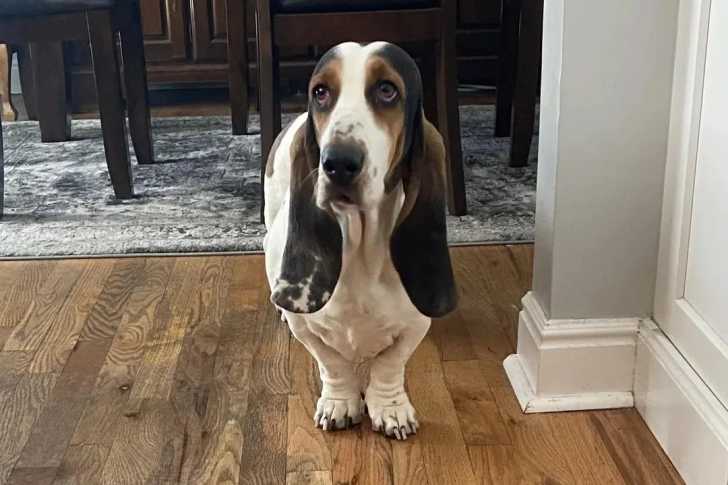 Un Basschshund sur un plancher et semblant détendu