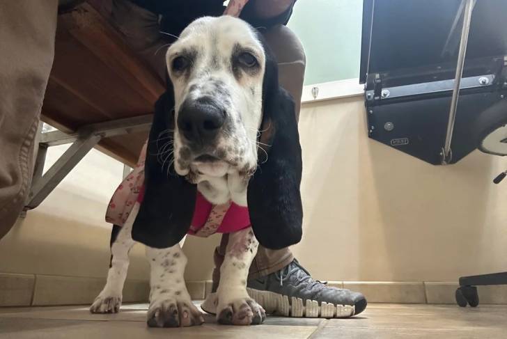 Un Basset Hound regardant vers la caméra