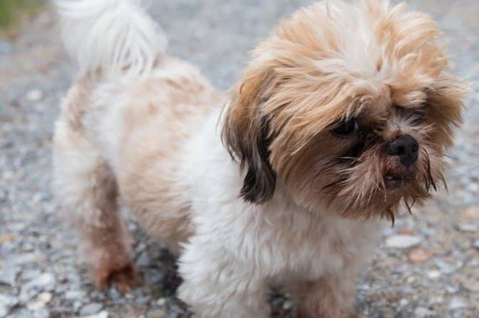 Un Bea-Tzu aboie sur les autres chiens dans un magasin