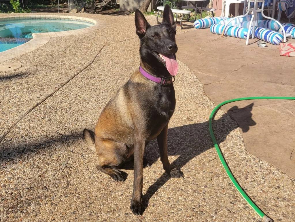 Un Belusky ayant la langue pendante et portant un collier autour du cou
