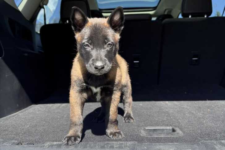 Un Belusky sur la malle arrière d'un véhicule