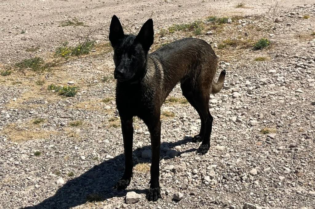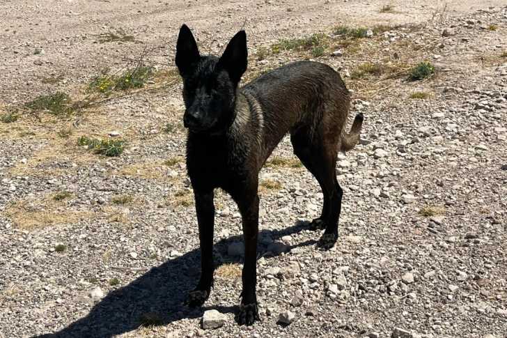 Un Belusky sur un terrain pierreux