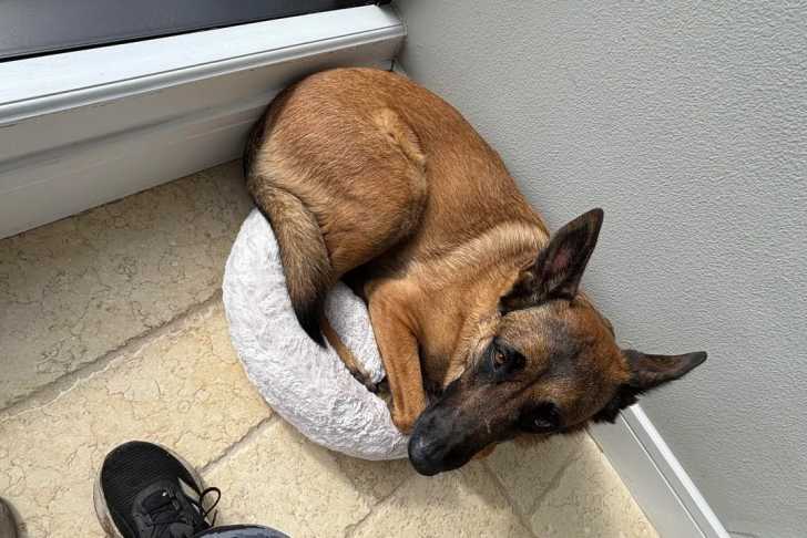 Un Belusky allongé sur un petit panier