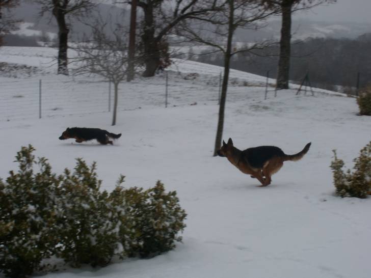 Belle et Lilou qui se courent après dans la neige