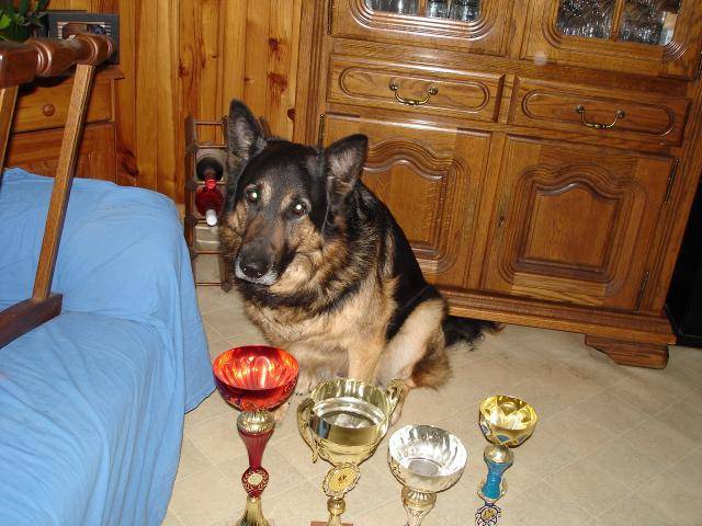 voila mon autre chien ourak avec une partie de ces coupes recu au expo :chien09